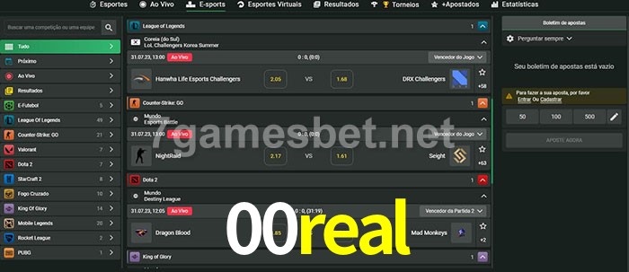 O 00real oferece uma grande seleção de opções de apostas em e-sports com probabilidades competitivas